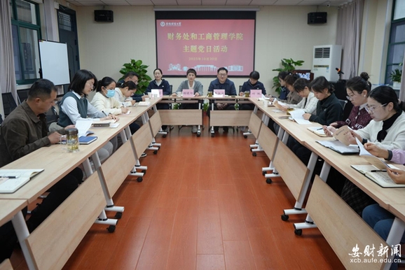 10月30日上午,学院教工党支部与机关党委财务处党支部联合开展“党建引领强思想、业务赋能促发展”主题党日活动,就党建工作和业务工作进行了交流研讨。学院党委书记黄铁流主持会议,财务处处长颜晓旭、财务处副处长张慧、学院党委副书记、纪委书记叶帆出席会议,财务处党员代表、各党支部书记及部分教工党员参加活动。