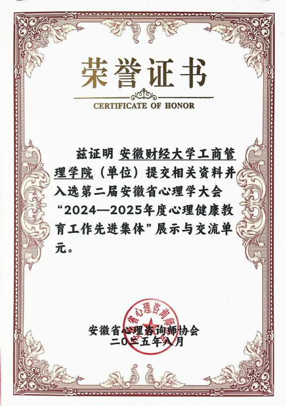 此项荣誉是学院继2024年获评“安徽省心理健康工作优秀单位”后,赢得的又一项省级殊荣,标志着我院心理育人工作的成效持续获得高度认可。